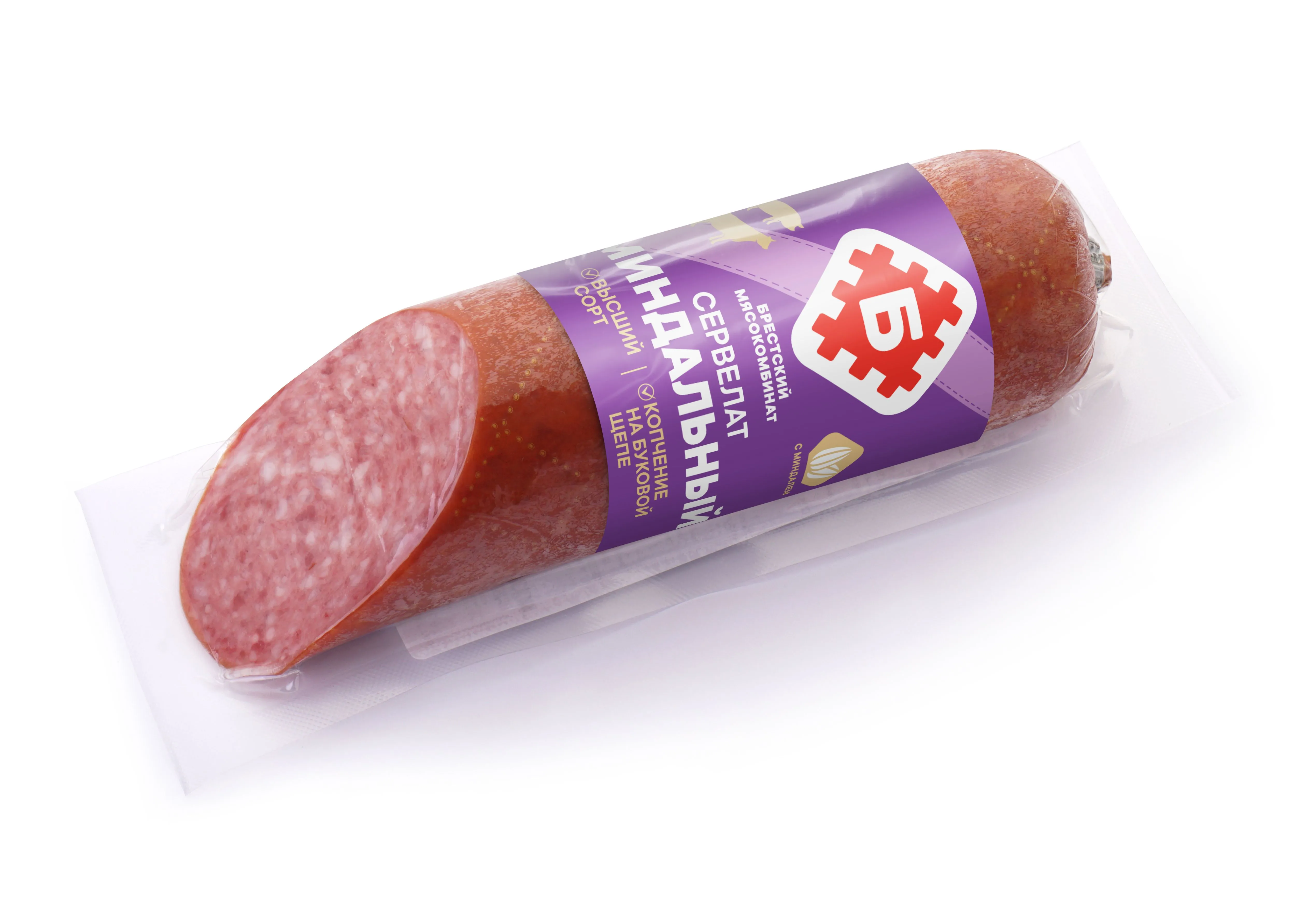 Купить Сервелат "Миндальный" 220 г можно с доставкой по Томске. Мы гарантируем отличное качество и свежесть наших белорусских колбас!
